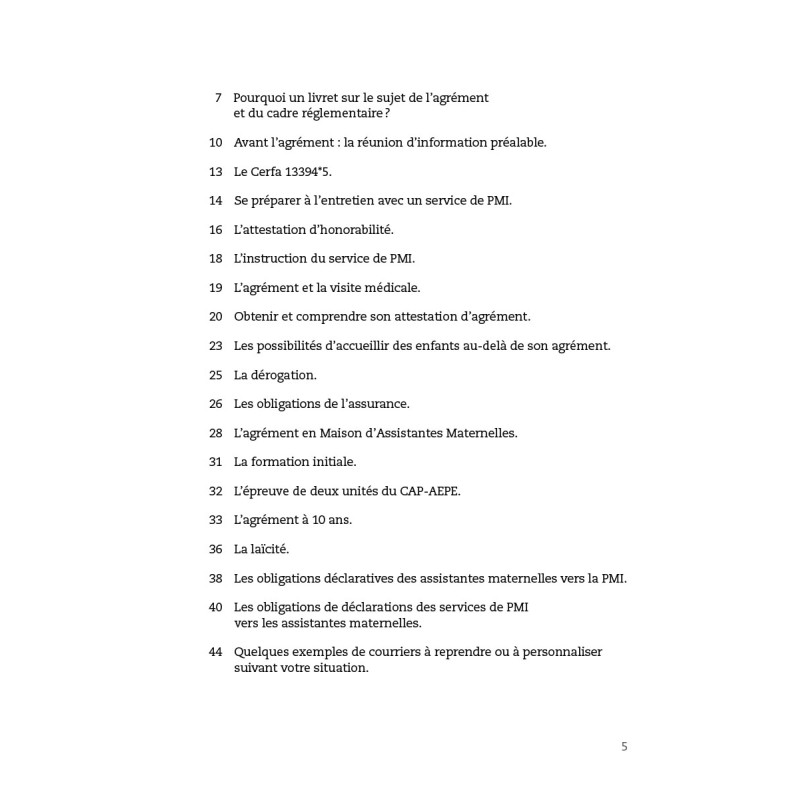 Côté méthode, ce document est élaboré en suivant les étapes de votre carrière : du départ de votre parcours à l’entretien avec un service de PMI en passant par les renouvellements d’agrément, les différentes obligations de déclarations ainsi que les suspensions de l’agrément.